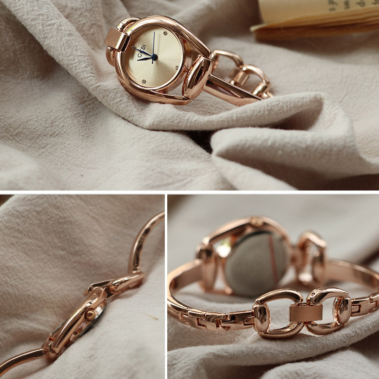 The BABILA AIMGAL 30 Gold Bracelet Watch is a beautiful metal timepiece. Minimal yet luxurious with a unique steel clasp. Available in two gold patinas.