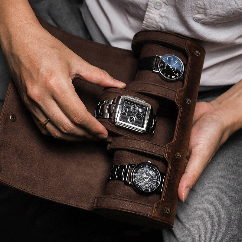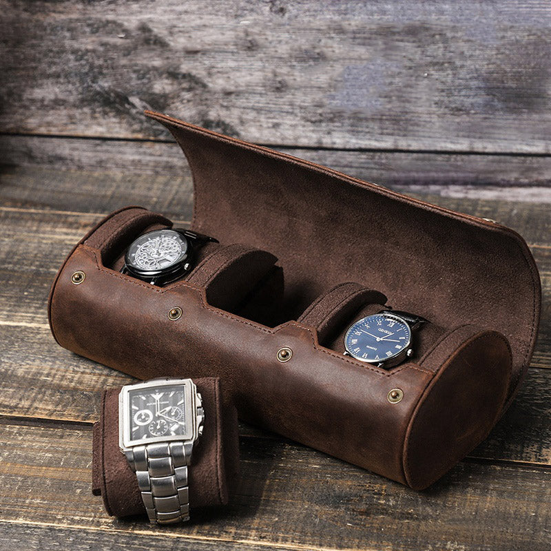 The Crazyhorse Handcrafted Leather Watch Roll Case is a rugged and beautiful watch storage case made from genuine, premium leather. It's the perfect travel accessory to transport your watches safely and securely.