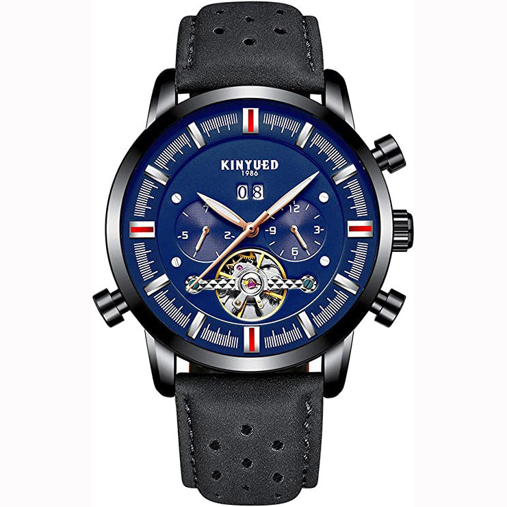 The KINYUED J019 Tourbillon Automatic Chronograph is an elegant wristwatch with classic styling and bold high-end chronograph function. With luminous pointers and premium leather straps, this Automatic movement watch is perfect as a stylish accessory or functional everyday timepiece.
