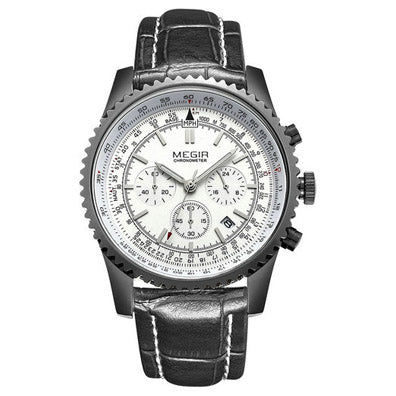 The MEGIR 2009 Luxury Quartz Chronograph is an elegant and simple wristwatch that combines the sophistication of a military style watch with the functional details of a high-end chronograph. With luminous pointers and premium leather straps, this Quartz movement timepiece is perfect as a stylish accessory or everyday wear.